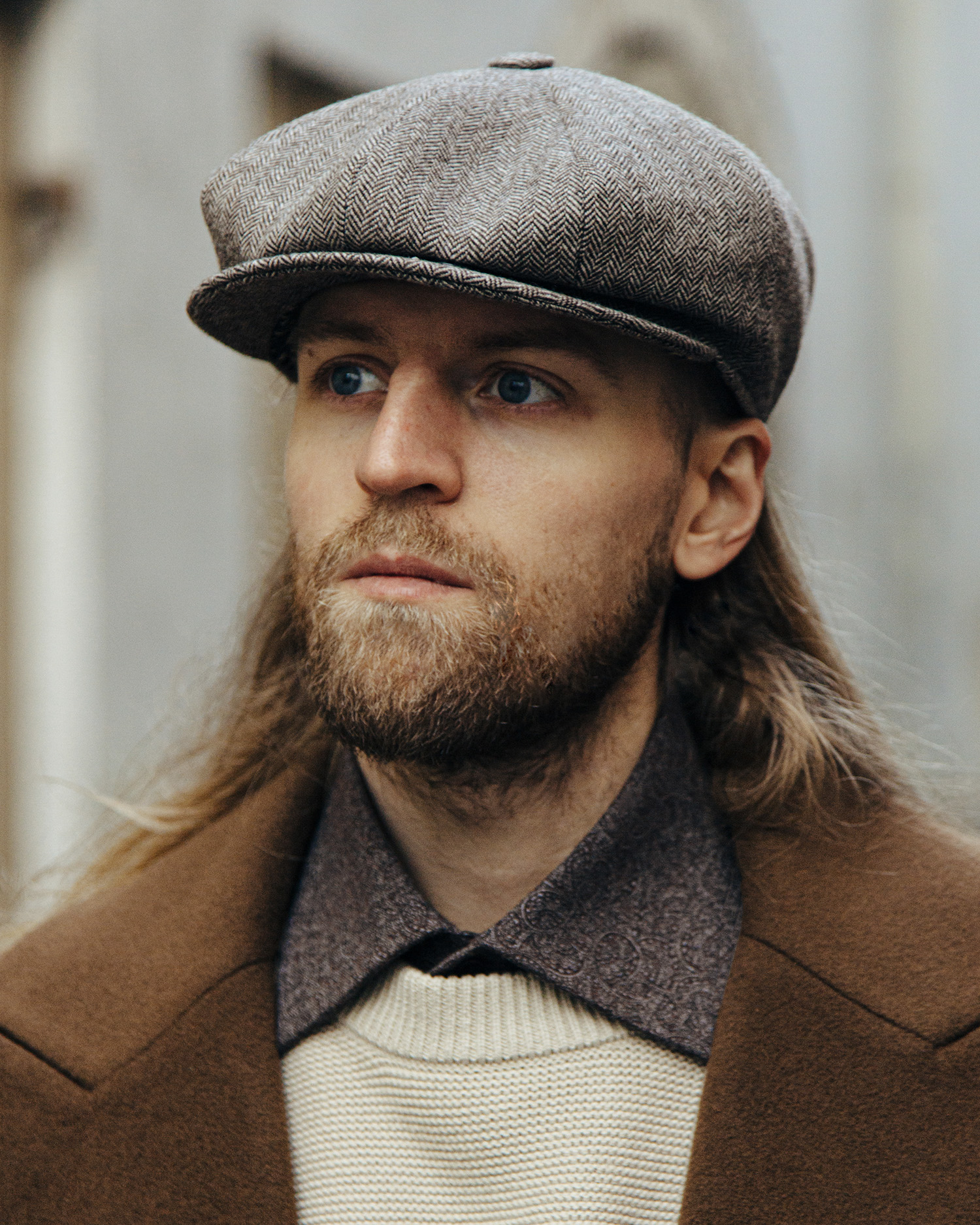 Light in tone and bold in presence, the Ash Baker Boy cap is a nod to heritage craftsmanship. It is handcrafted in OEKO-TEX-certified herringbone tweed and lined with GUILD’s signature pattern. Whether paired with a tailored coat or a casual knit, it speaks of quiet strength and effortless style.