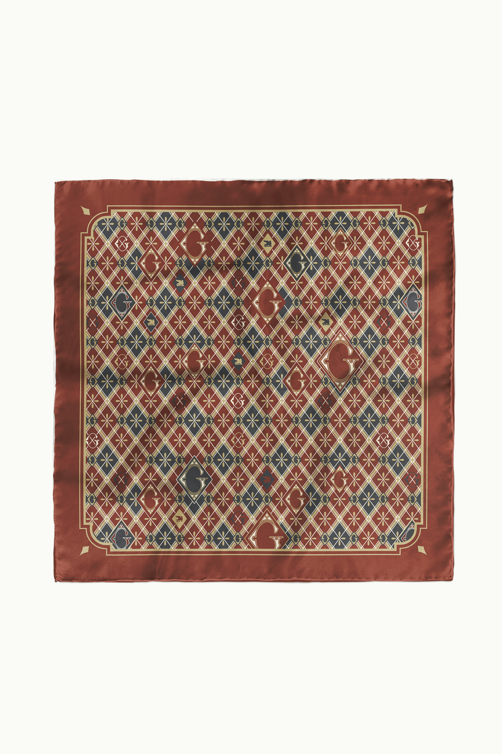 A silk-twill pocket square in rich Medieval Red and deep Woad Blue. Our signature print brings a whisper of heritage to modern tailoring, perfect for elevating any suit with subtle sophistication.