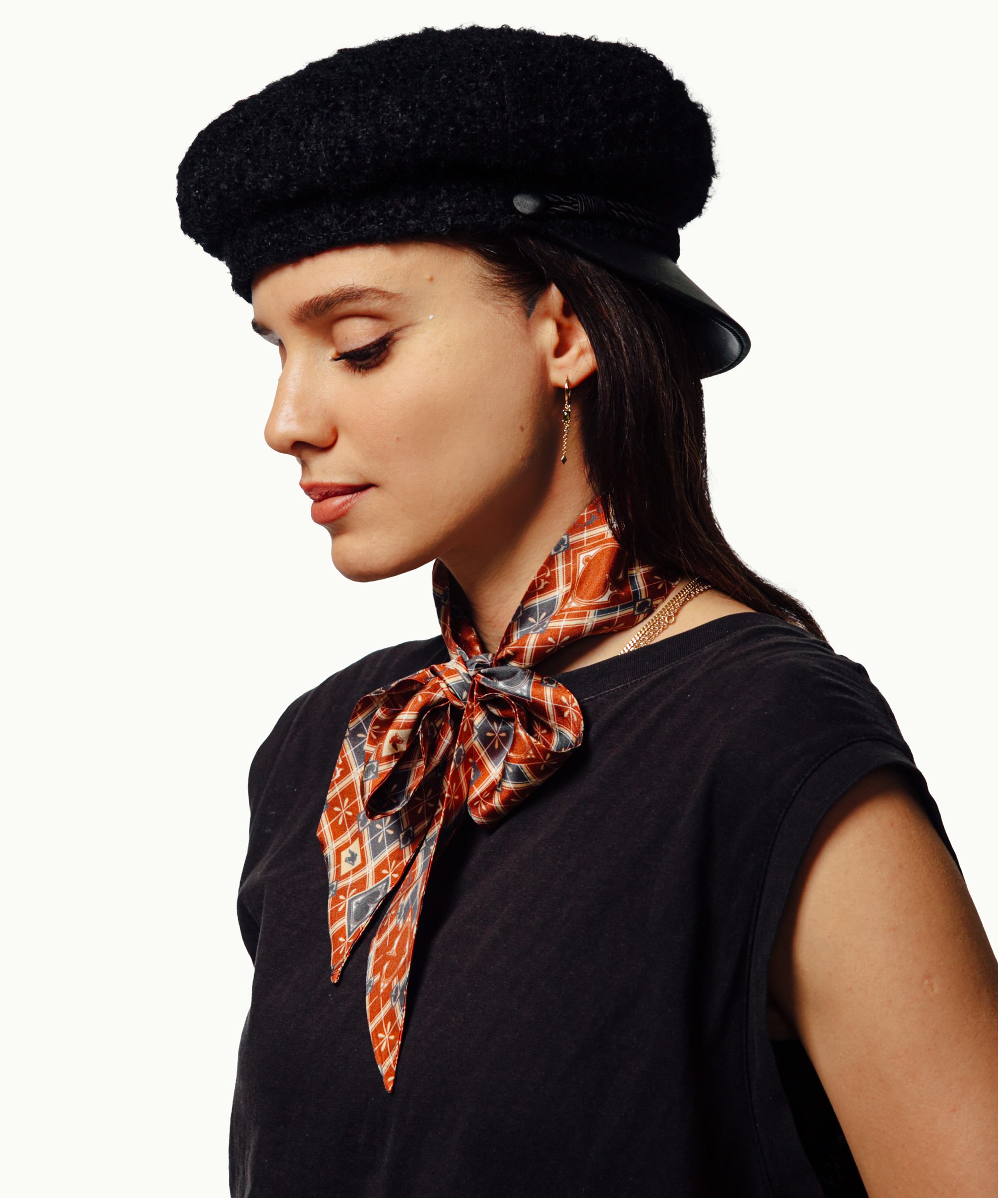 Our signature silk scarf showcases the house print in rich Medieval Red and deep Woad Blue – tones inspired by ancient dyes and centuries of craftsmanship. Cut from smooth silk-twill, this elegant piece drapes beautifully as a neck tie, a chic ponytail wrap, or knotted around the handle of a tote, adding a touch of heritage to modern style.